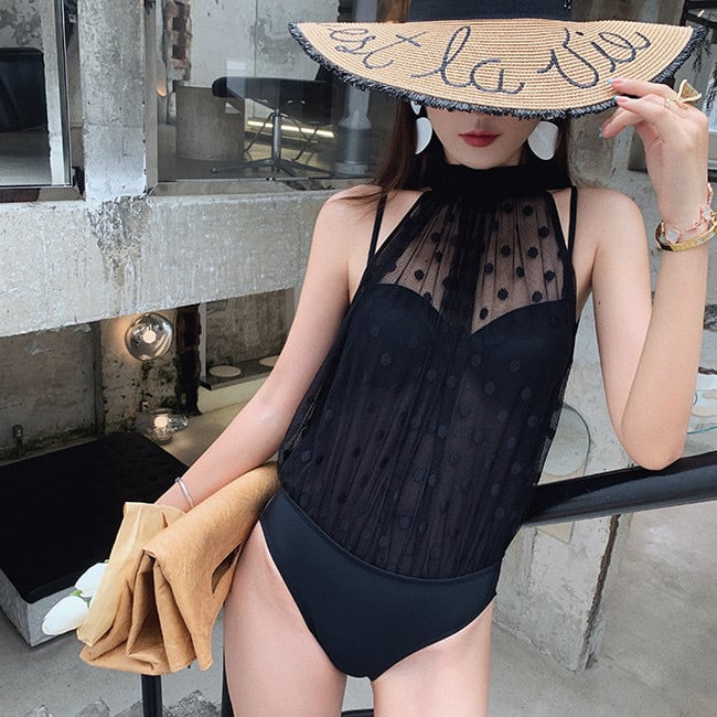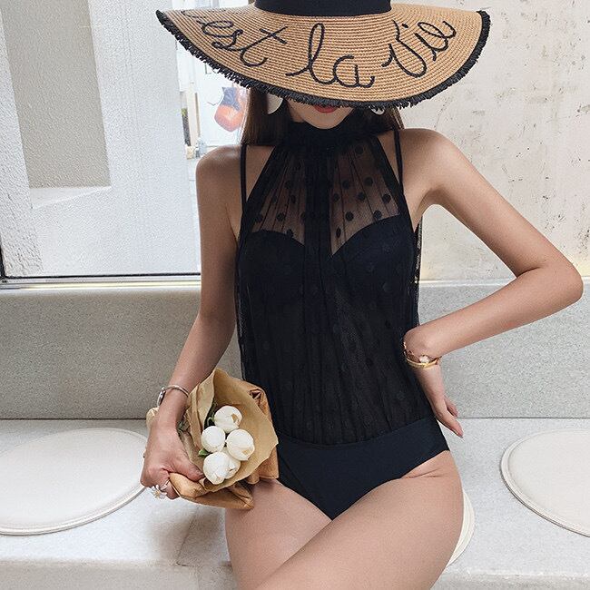 検索タグ: 水玉 ドット柄 シースルー リボン レース メッシュ モノキニ バックコンシャス モノキニ ドレス水着 韓国 オルチャン セクシー水着