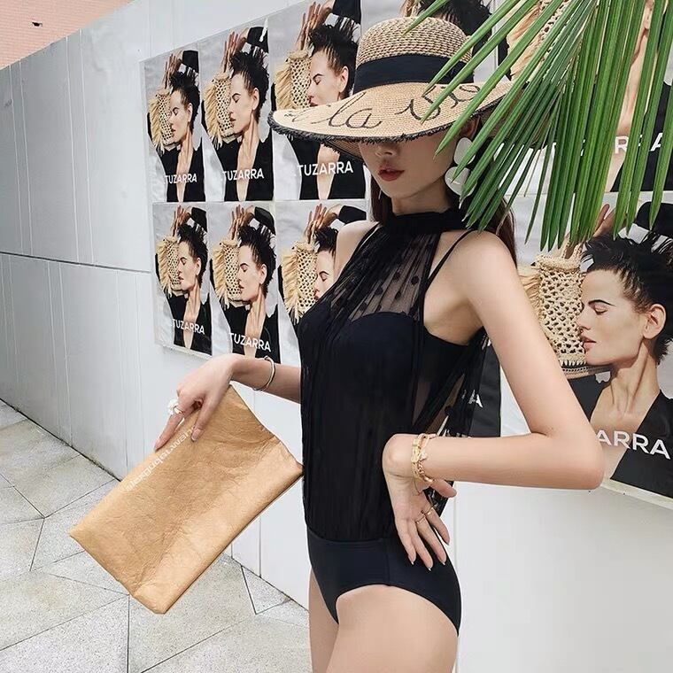 スパやホテル内のプールなど少し肌面積を控えたい時、でもゴージャスに見せたい時にも活躍する1枚です。
