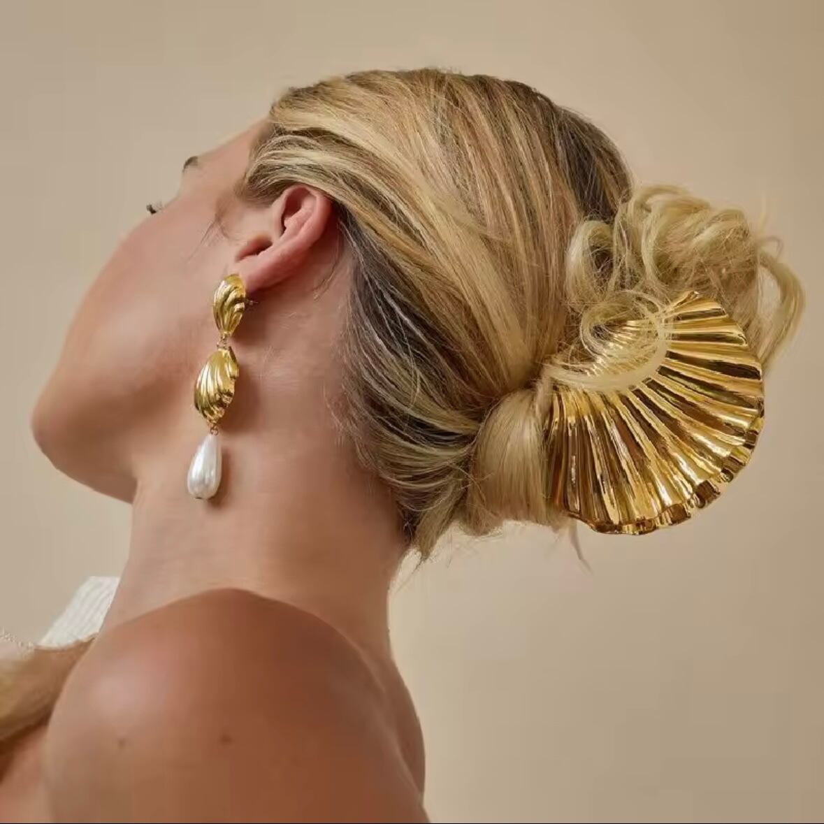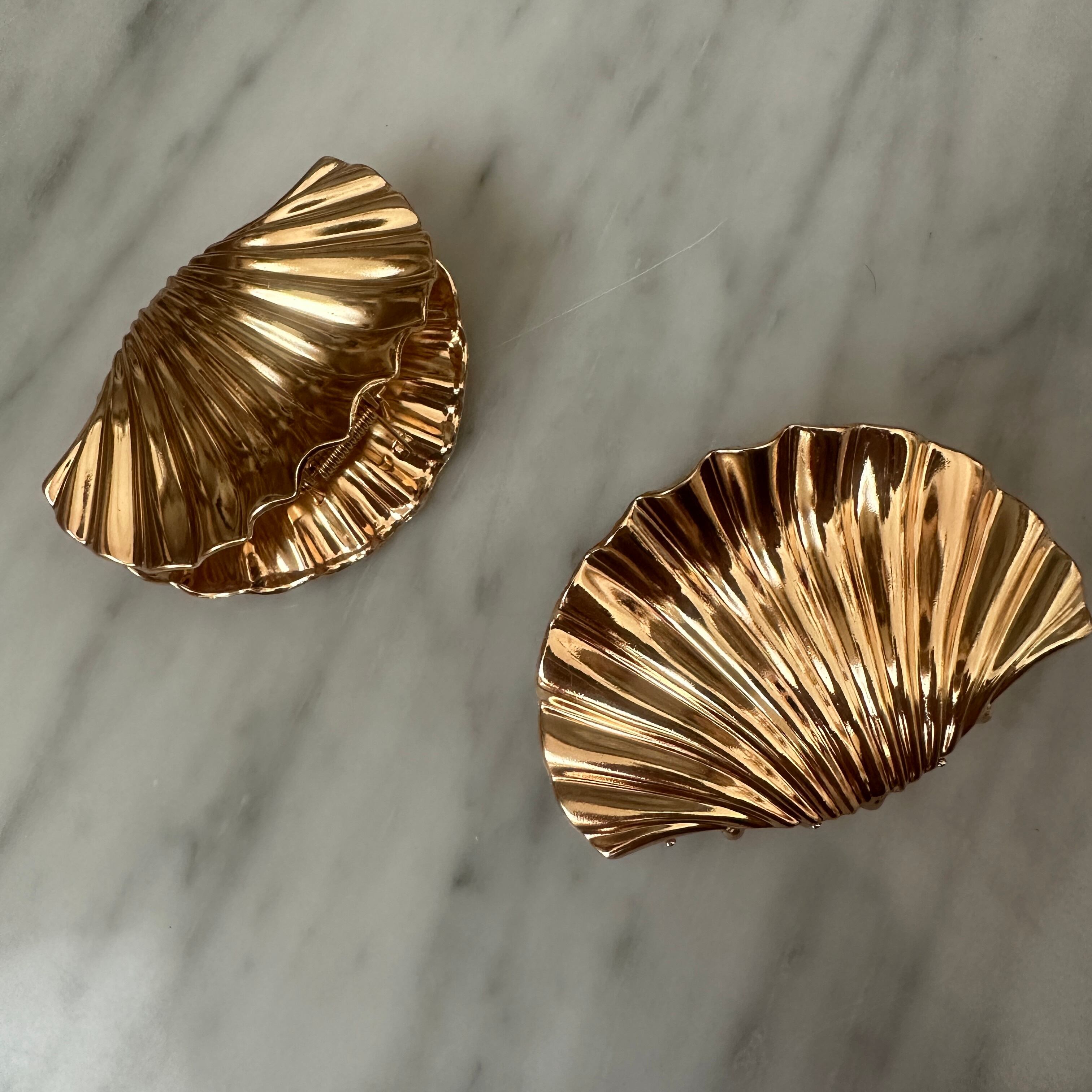ゴールドの 大きな貝殻 シェルの形をしたバレッタ ヘアクリップです。