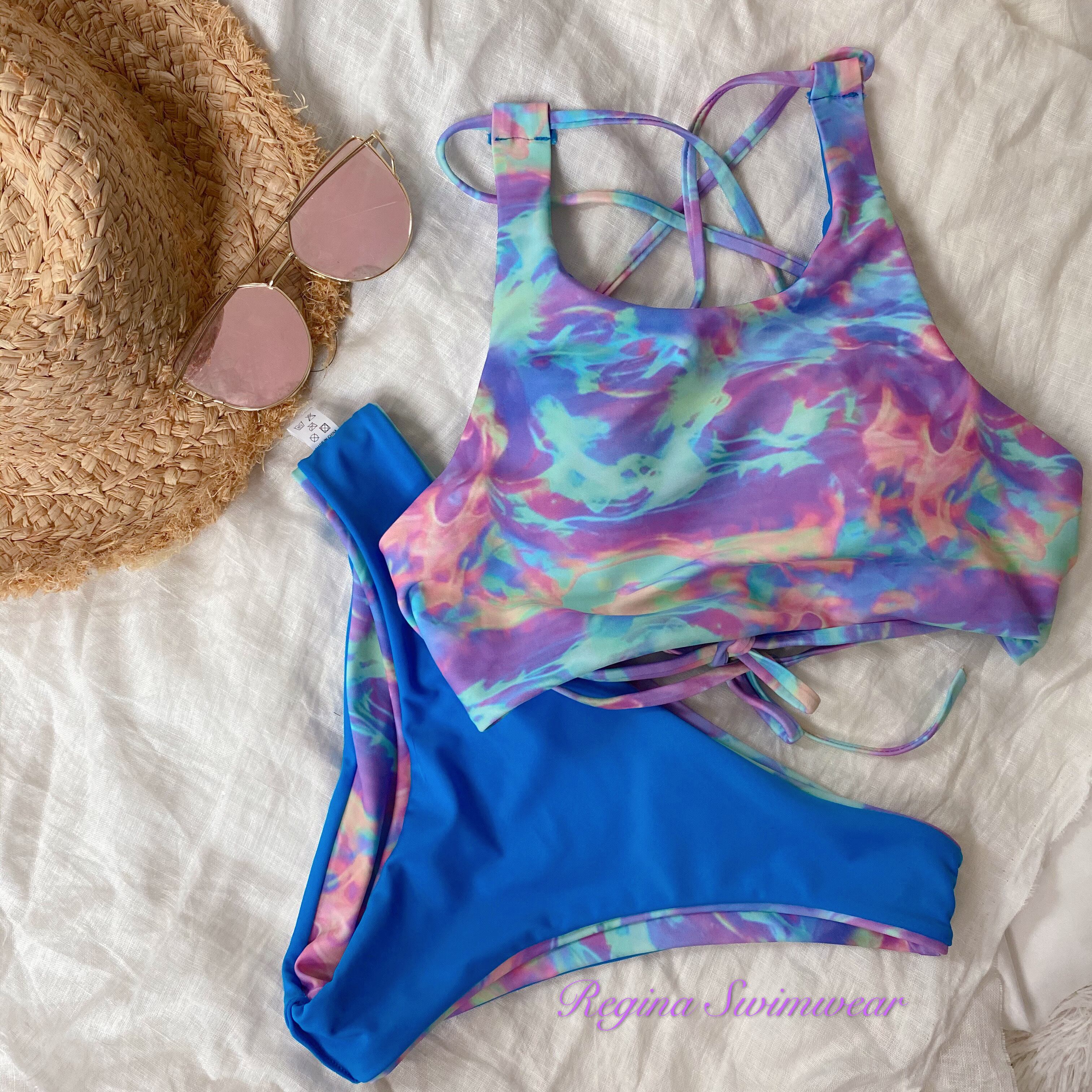 ビーチやプール、リゾートの風景に映えるタンクトップビキニです。