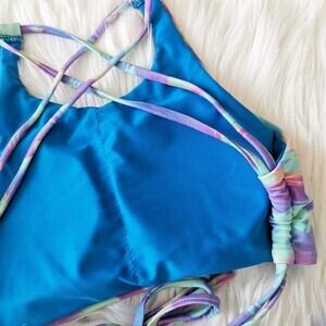裏面のブルーとバッククロスで背中が空いたセクシーなデザインがポイント。