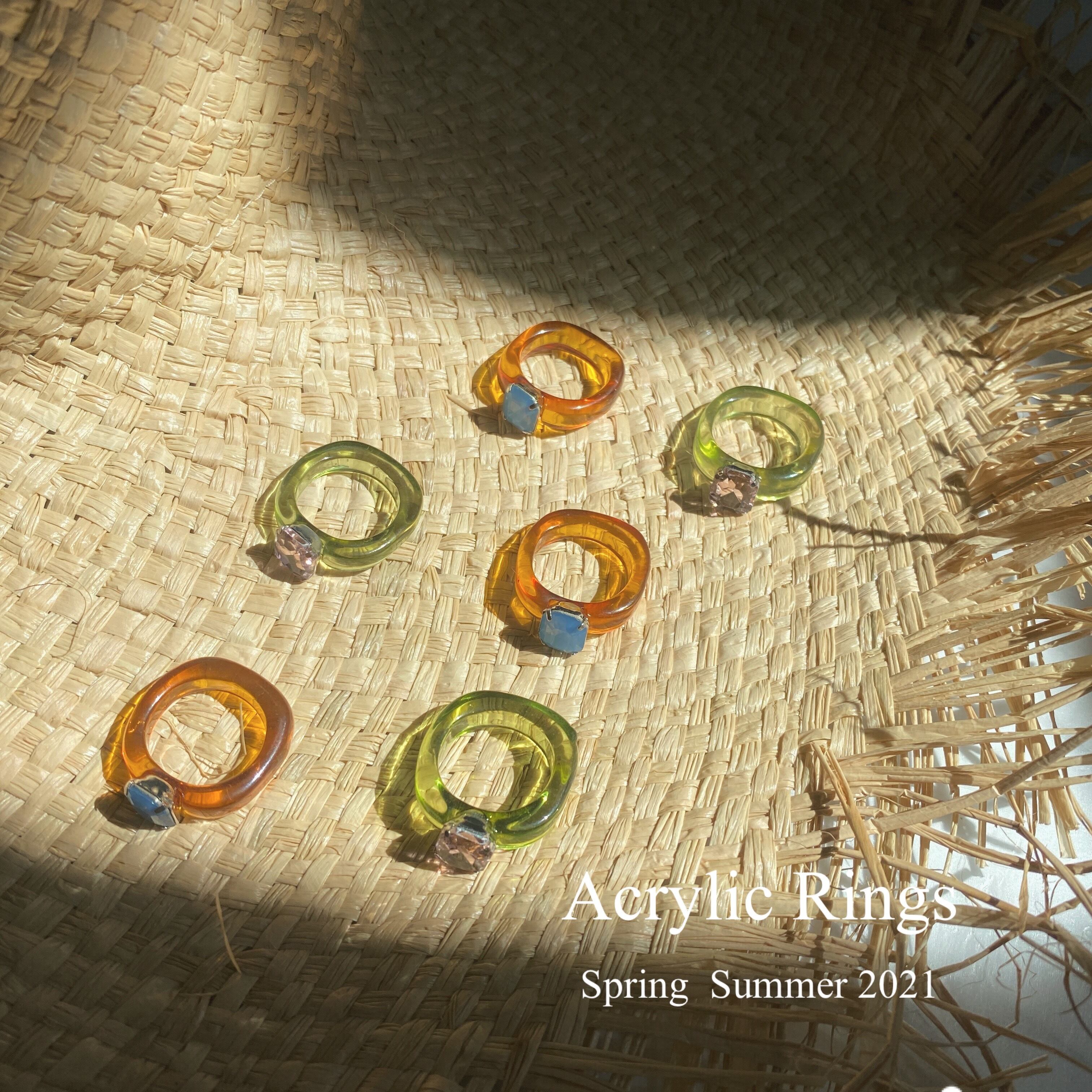 今年の春夏に流行のアクリルリング。ビーチアクセサリーに最適!
