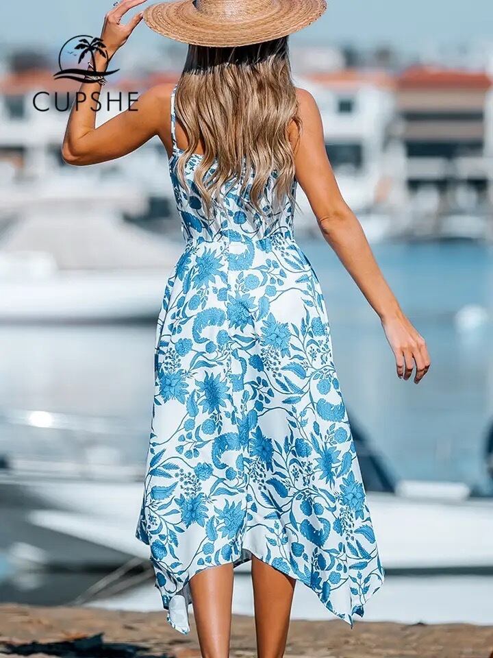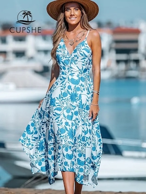 【CUPSHE】カリフォルニア 花柄 ビーチドレス カバーアップ リゾートドレス